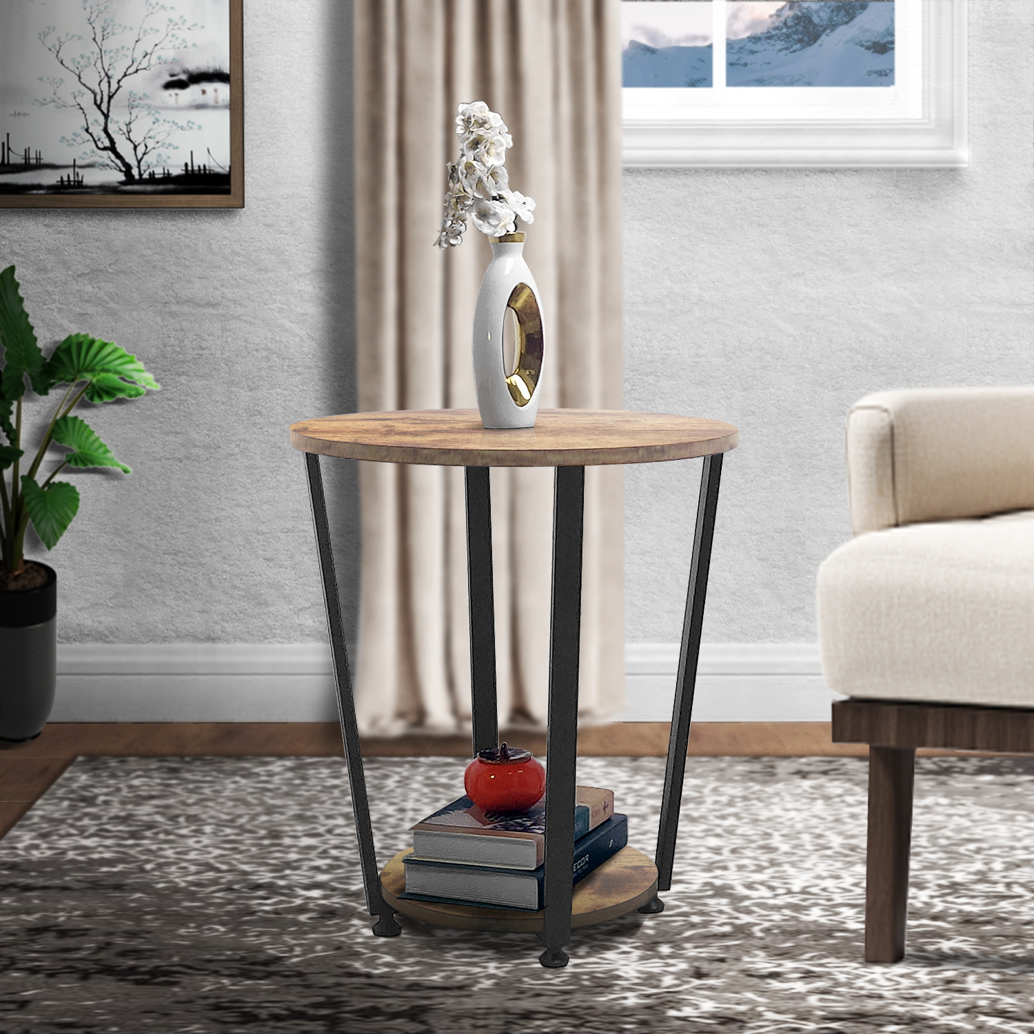 Vintage Round Accent End Table, Brown, 23.4"x23.4"x18.0"