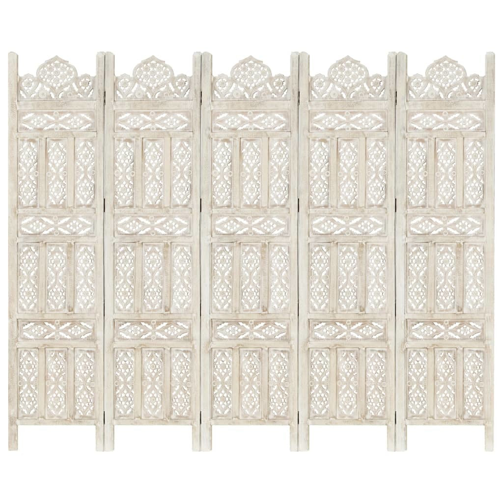 Hand carved 5-Panel Room Divider White 78.7"x65" Solid Mango Wood