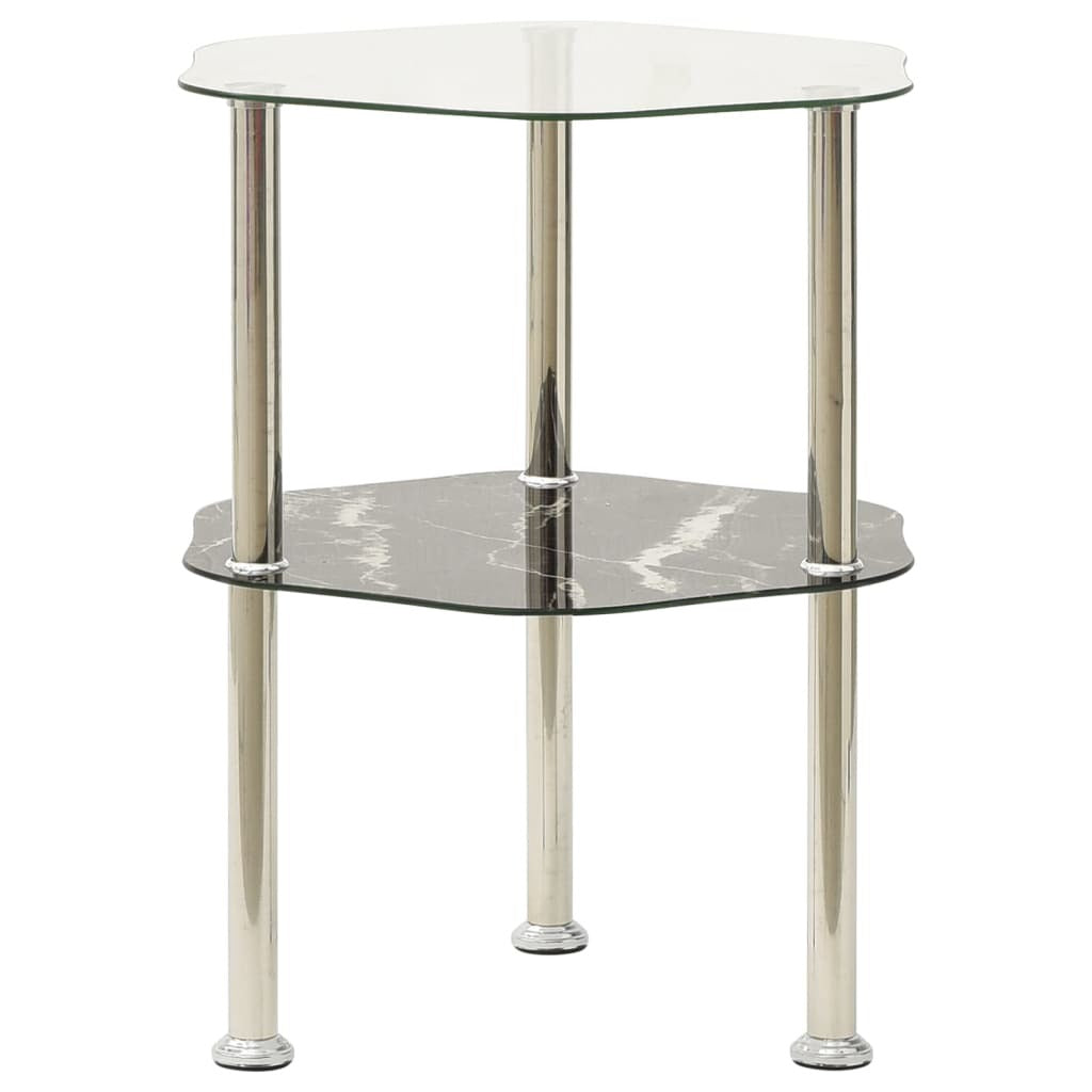 2-Tier Side Table Transparent & Black 15"x15"x19.7" Tempered Glass