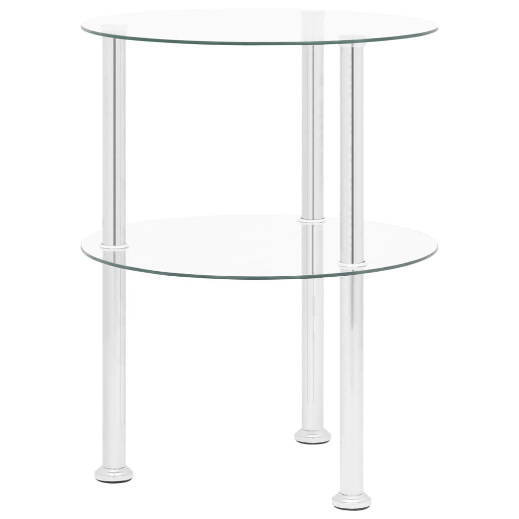 2-Tier Side Table Transparent 15"x15"x19.7" Tempered Glass