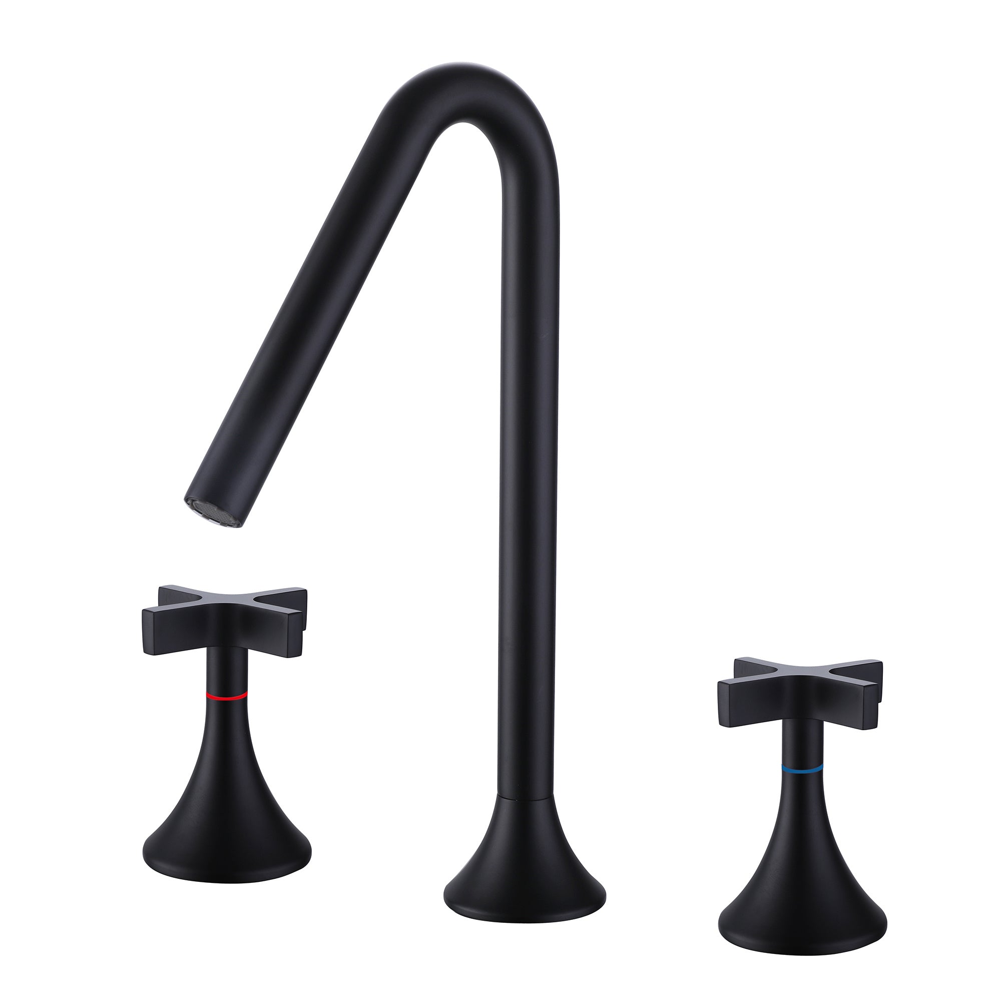 Round Widespread Double Handle Bathroom Sink Faucet with Matte Black
