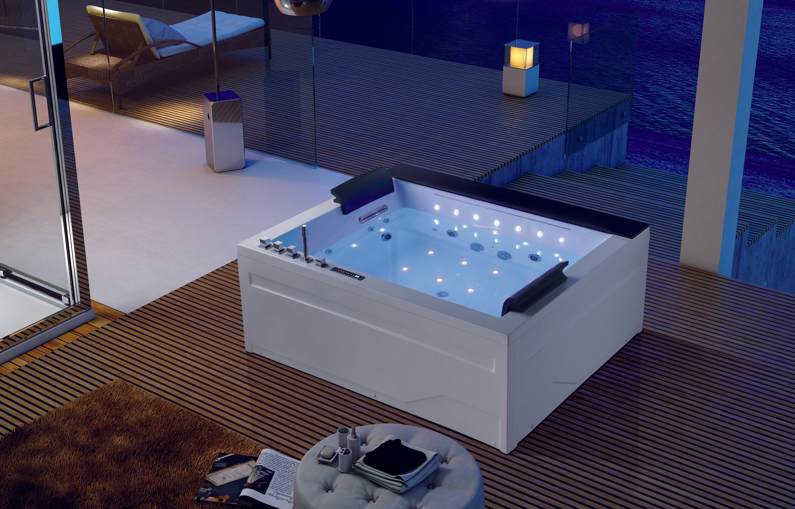 71 inch acrylic double massage bathtub white