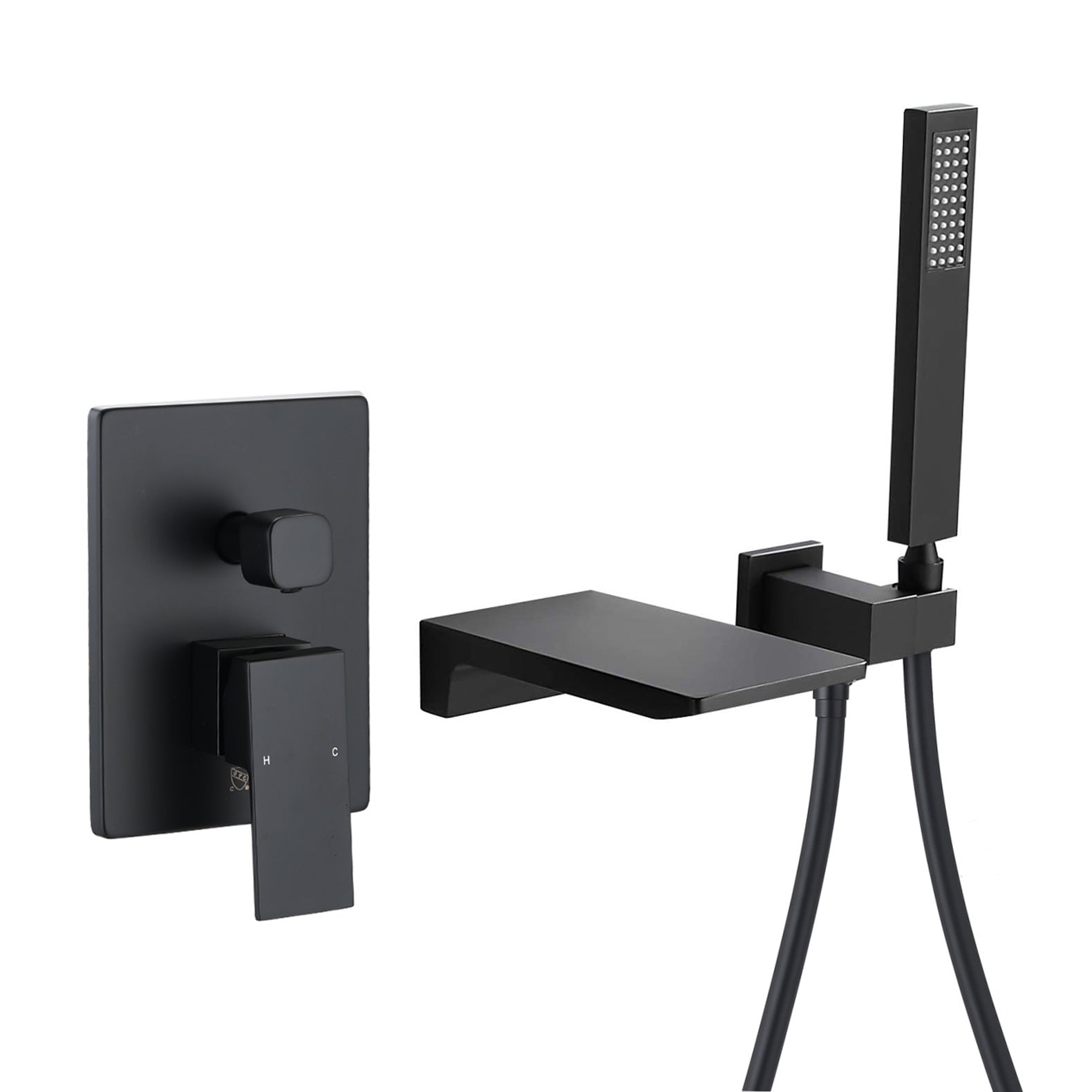 Matte Black Waterfall Wall Mounted Tub Faucet with Hand Shower