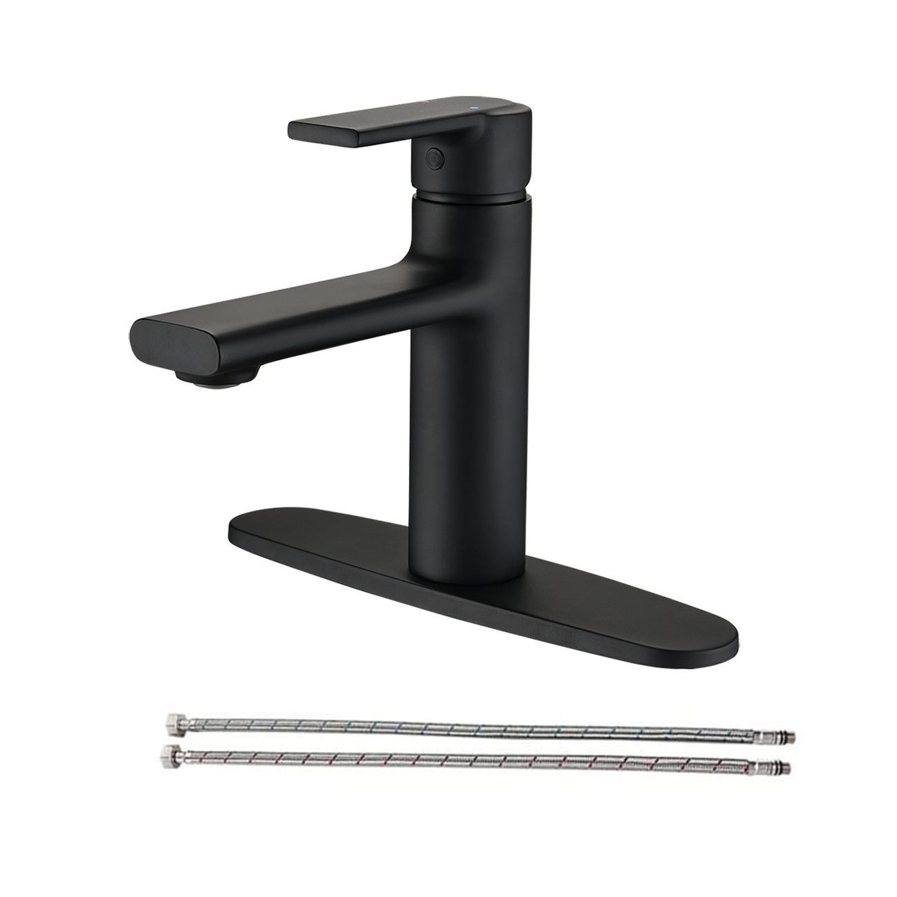 Matte Black Single Hole Bathroom Faucet with Deck Plate