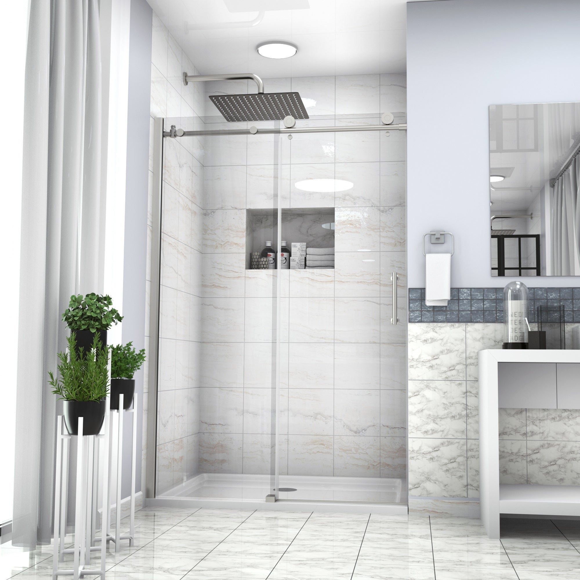 Shower Door 48" W x 76"H Single Sliding Bypass Shower Enclosure,Chrome