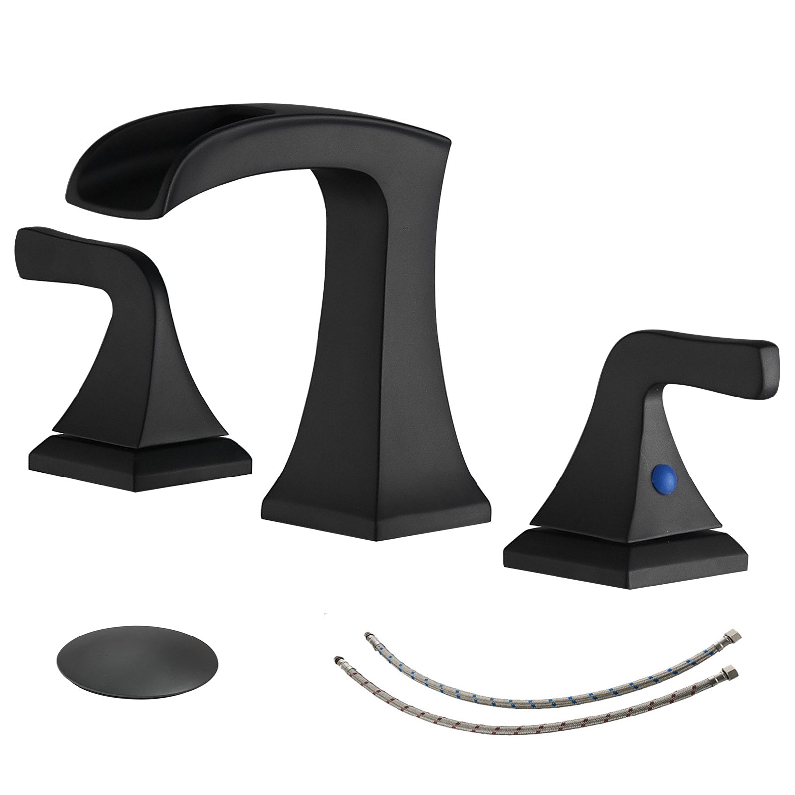 8 in. Widespread 2-Handle Waterfall Bathroom Sink Faucet in Matte Black