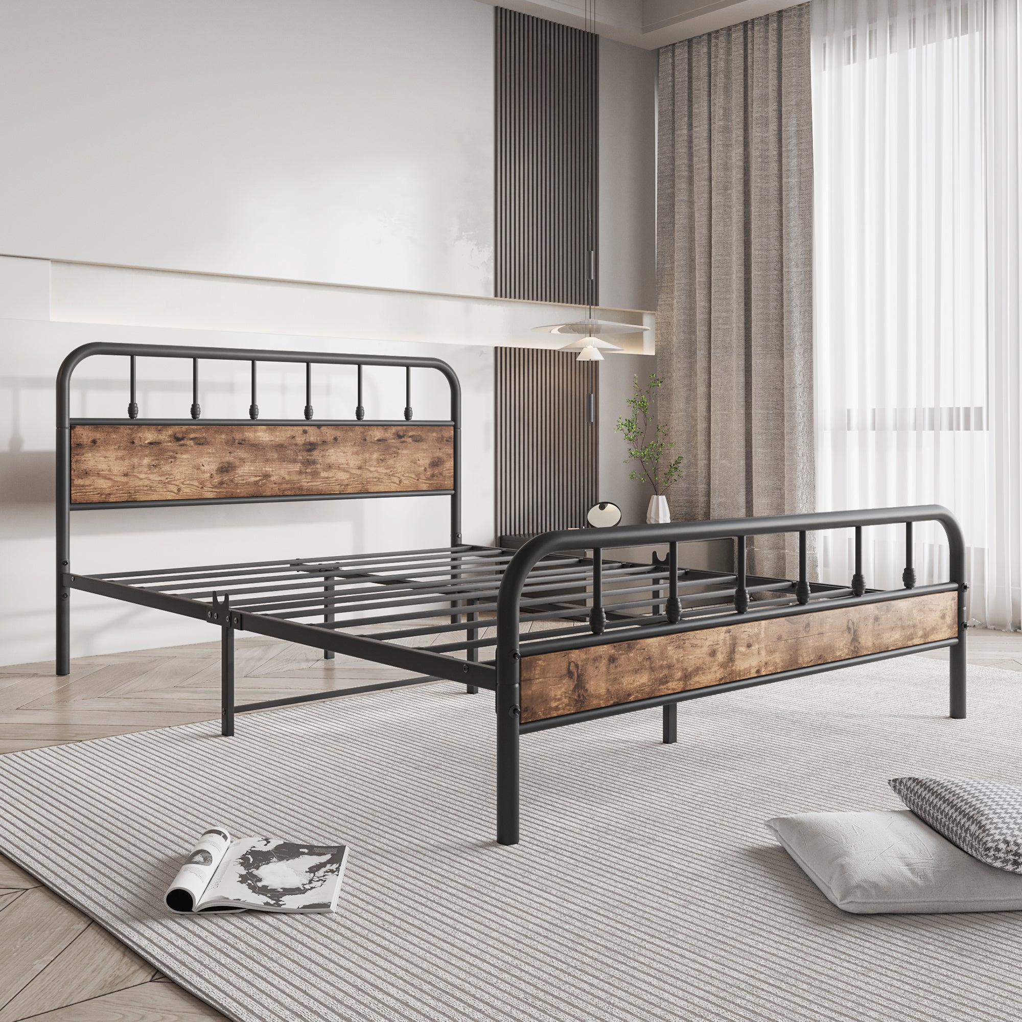 Queen Size Bed Frames with Wood Headboard and Footboard Vintage Brown