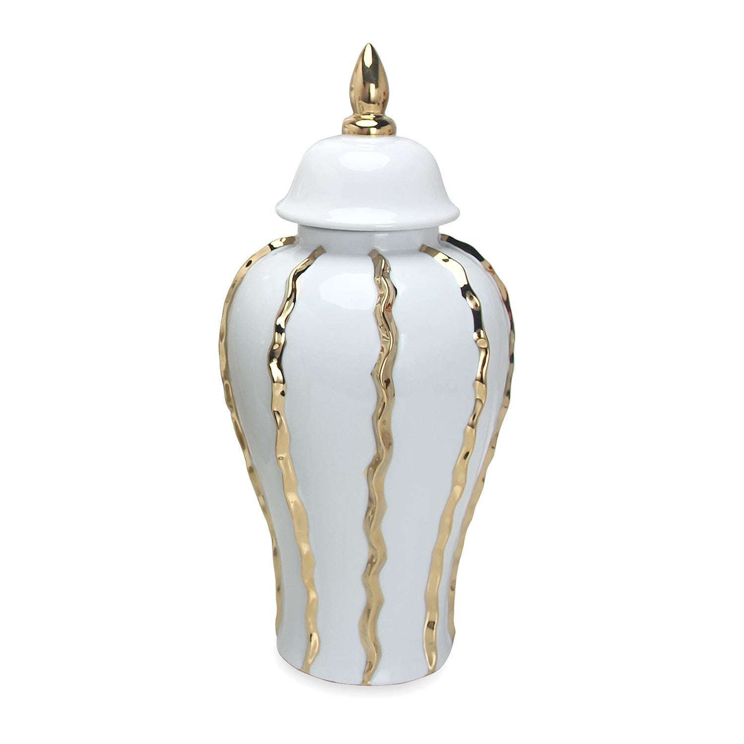 Elegant White Ceramic Ginger Jar with Gold Accents - Timeless Home Decor