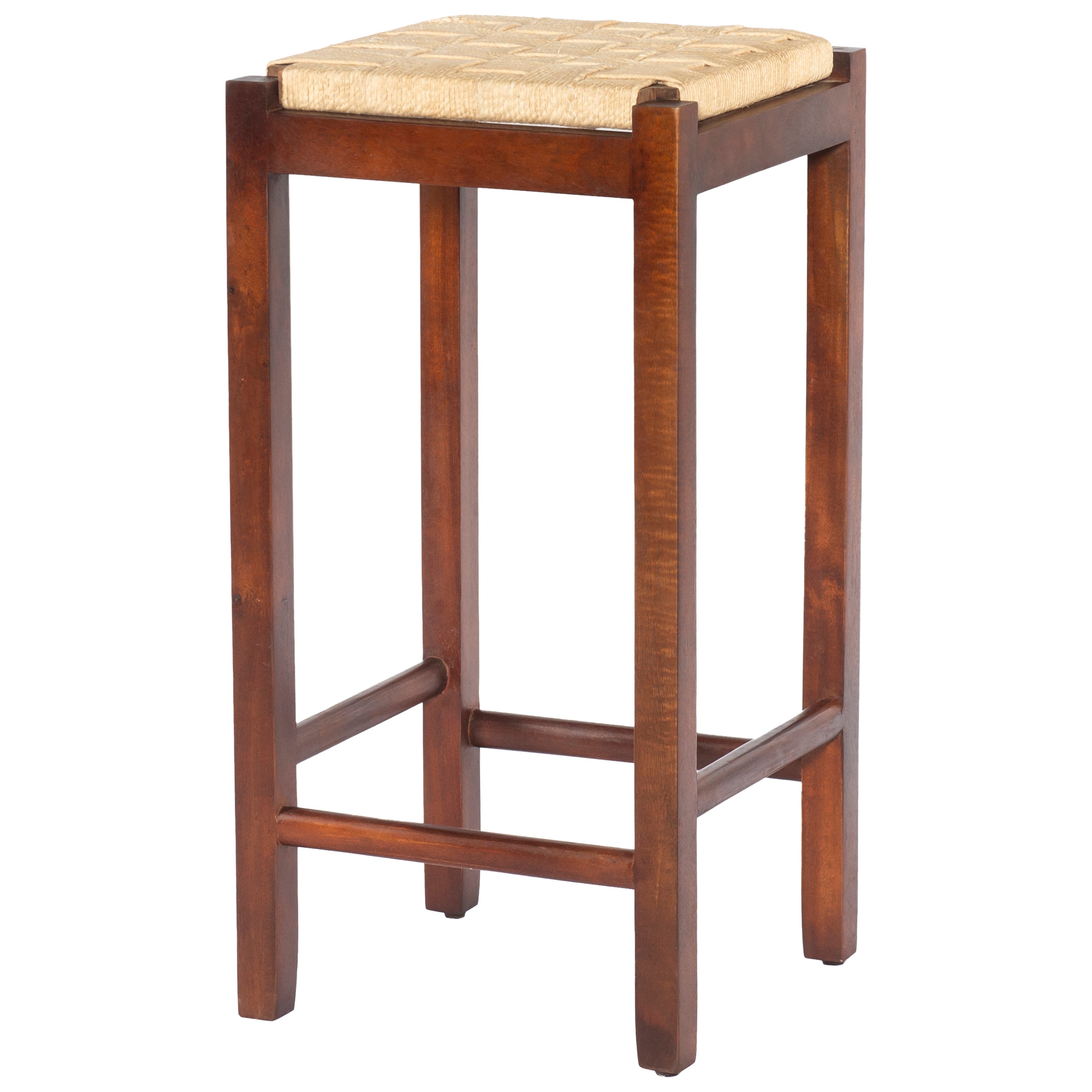 Mango Wood Barstool with Rope Weaved Seat, Brown