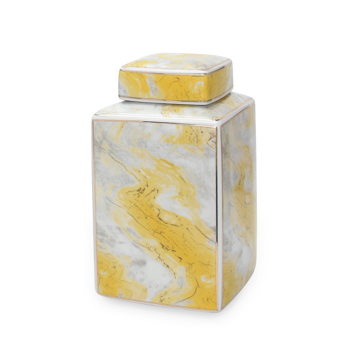 Square Glass Ginger Jar with Gold and Gray Marble Design