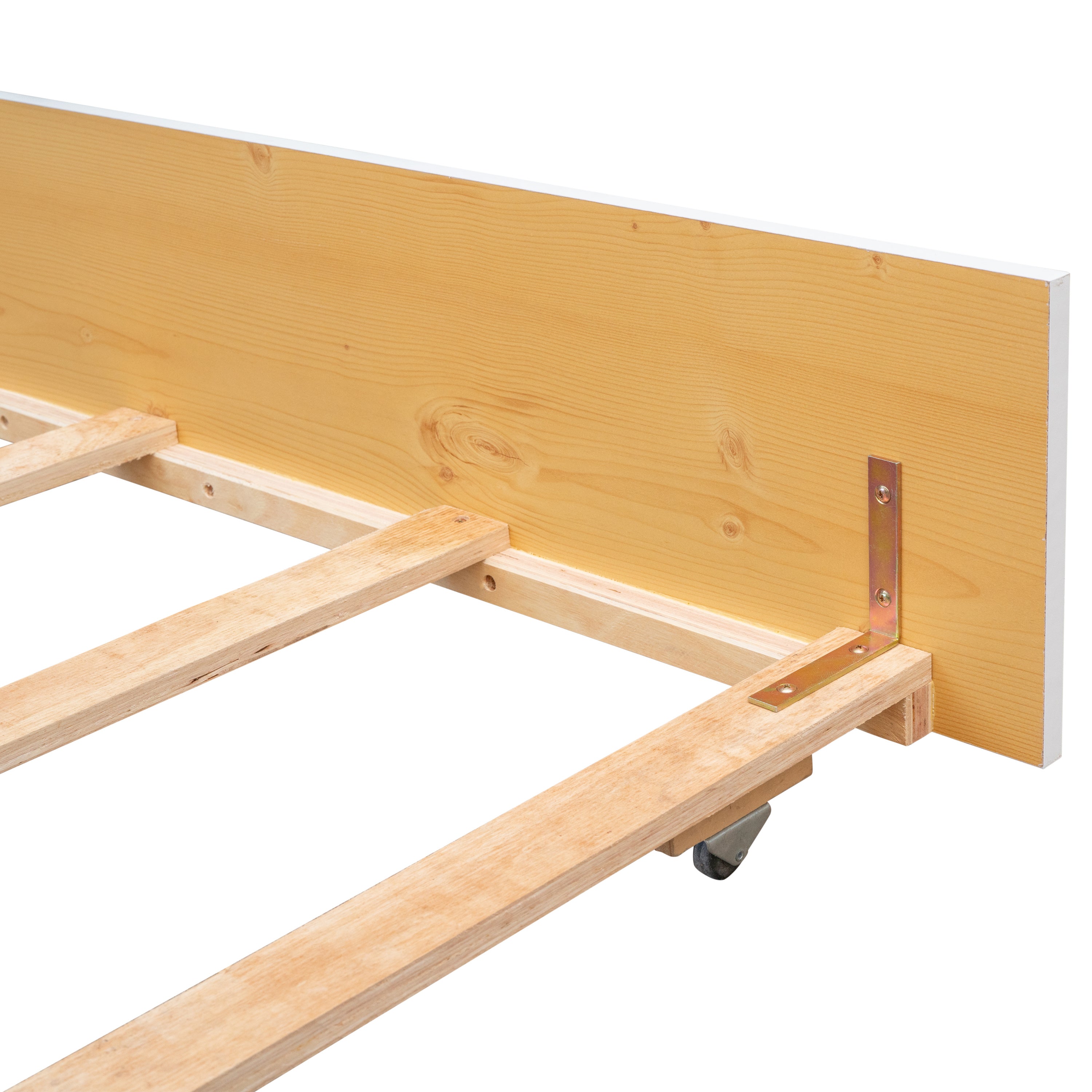 Twin Storage House Bed for kids with Bedside Table, Trundle, White