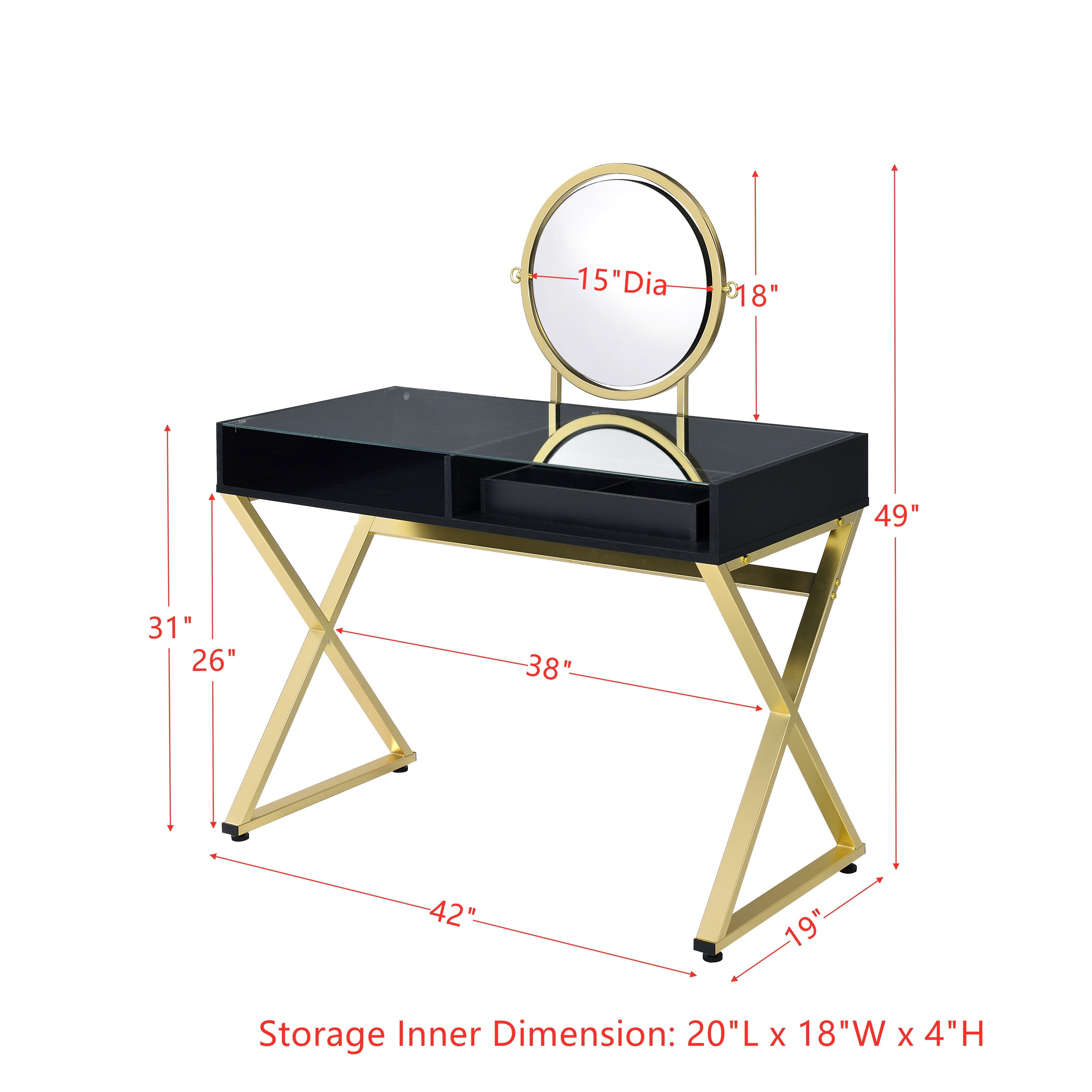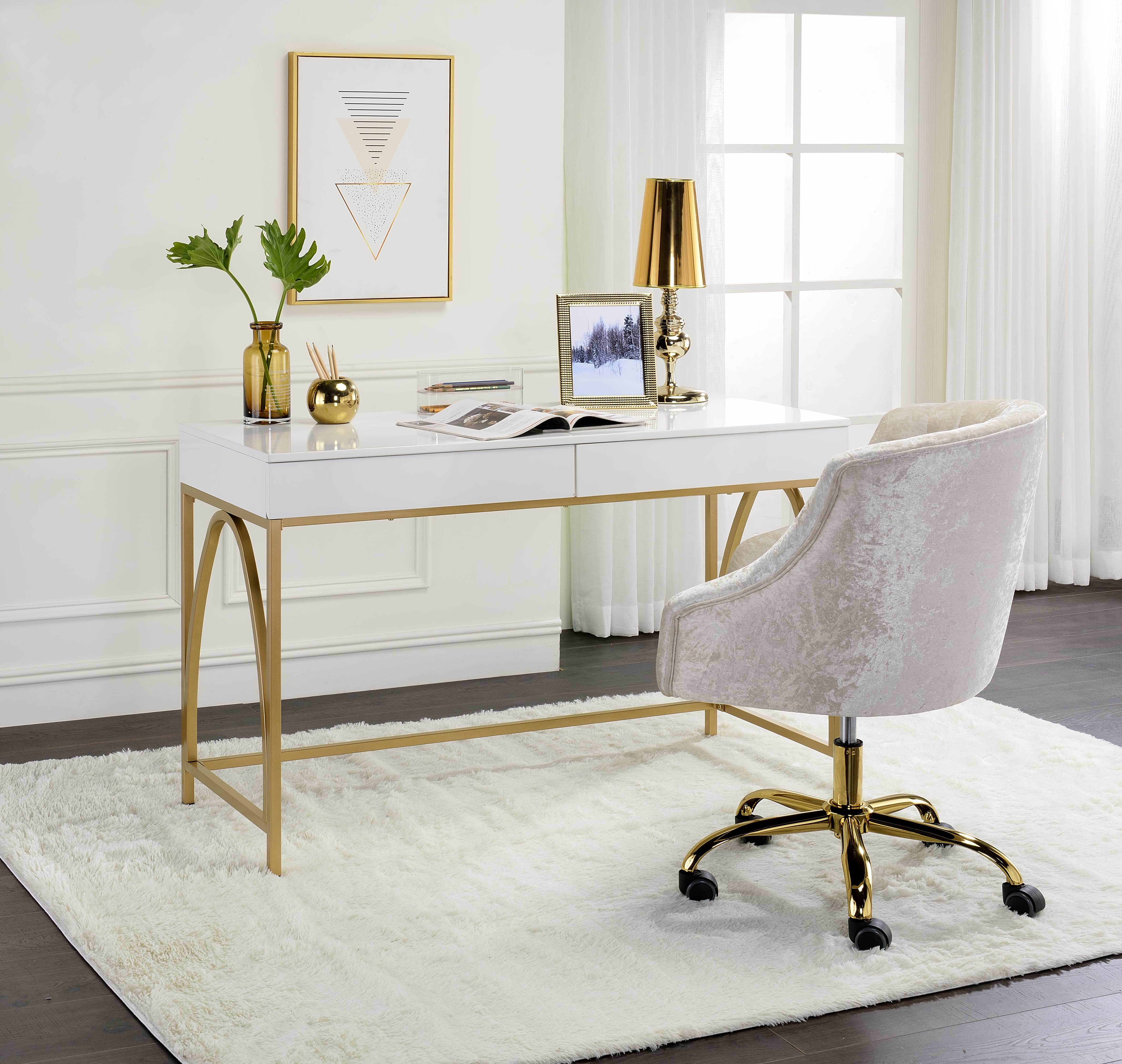 ACME Lightmane Vanity Desk in White High Gloss & Gold Finish AC00900