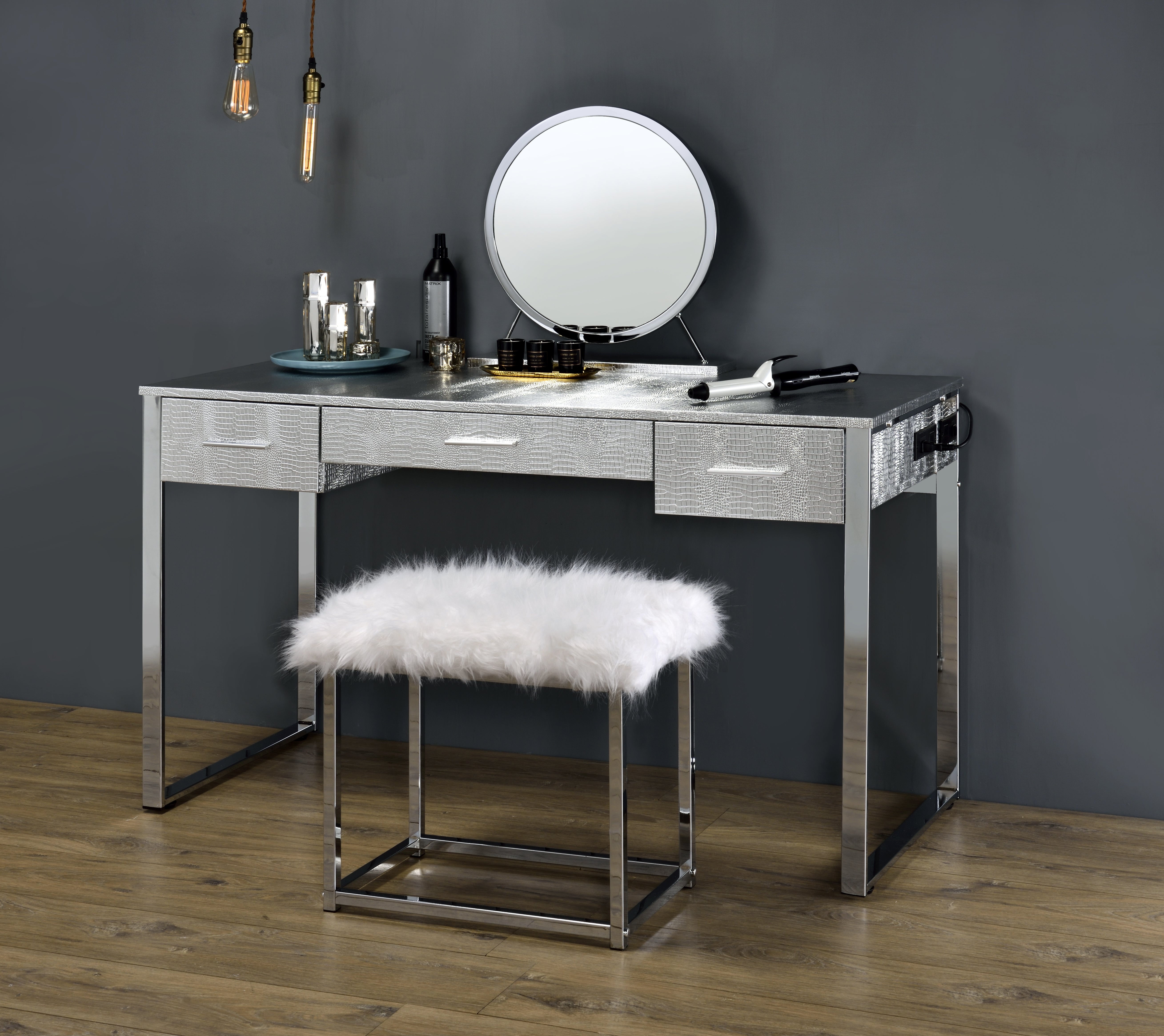 ACME Tennos Vanity Desk in White & Chrome Finish AC00903