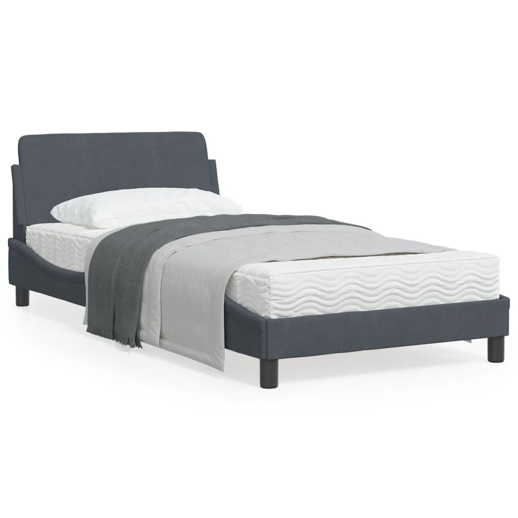 Bed Frame with Headboard Dark Gray 39.4"x74.8" Twin Velvet