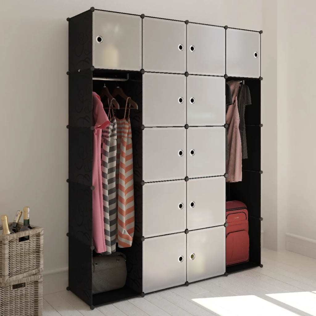 Modular Cabinet with 14 Compartments Black and White 14.6"x57.5"x71.1"