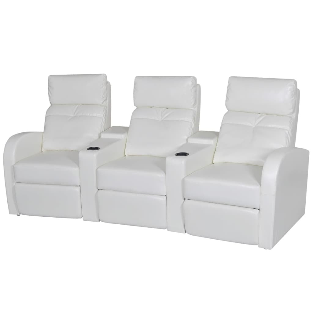 3-Seater Home Theater Recliner Sofa White Faux Leather