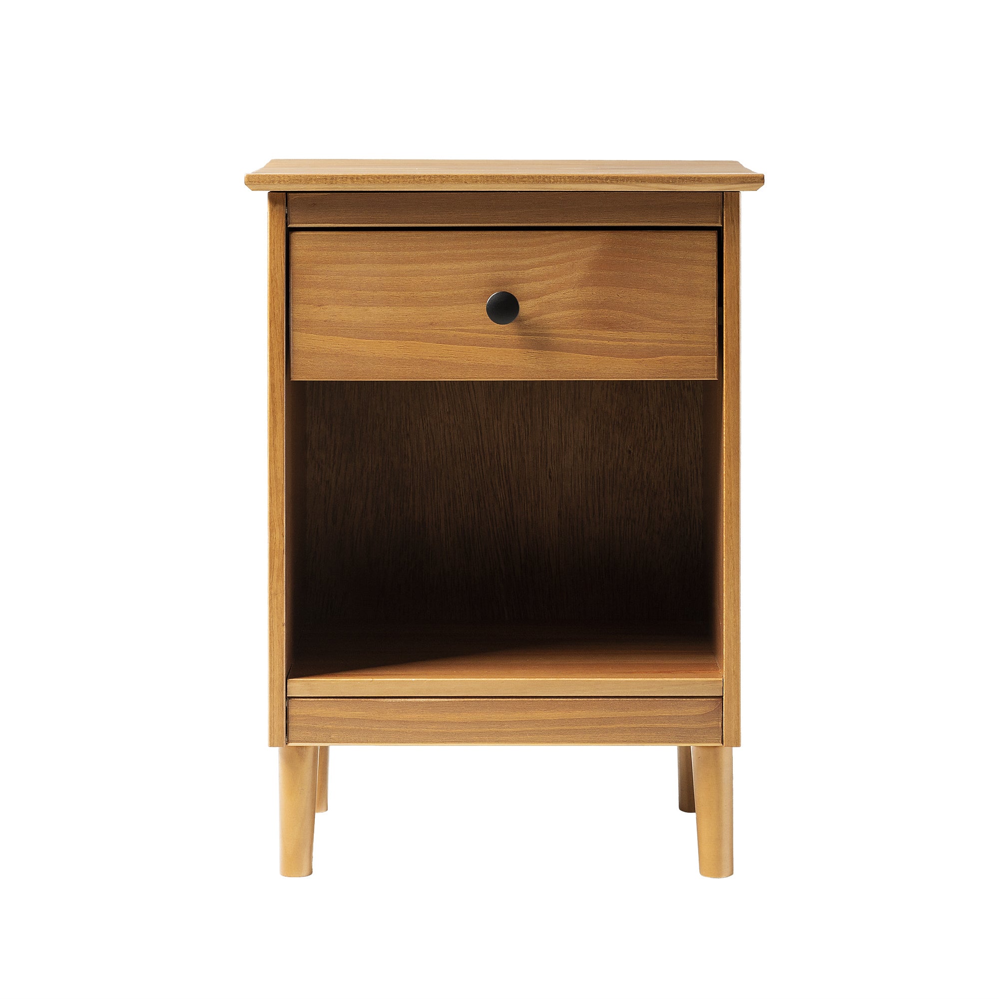 Classic 1-Drawer Solid Wood Nightstand with Cubby - Caramel
