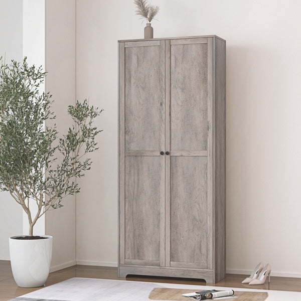Particleboard veneer, retro gray, 2-door, 4-shelf wooden wardrobe