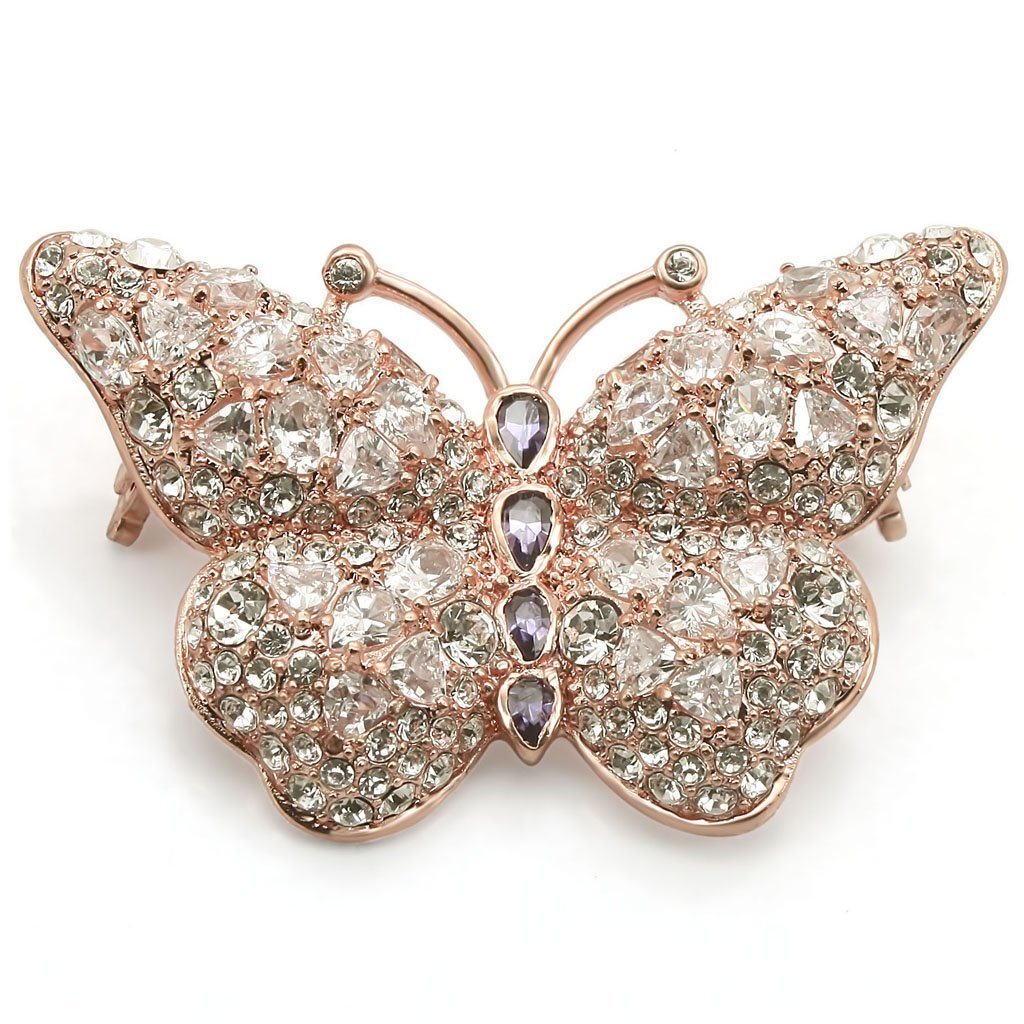 LO1227 - Rose Gold Brass Brooches with AAA Grade CZ in Amethyst