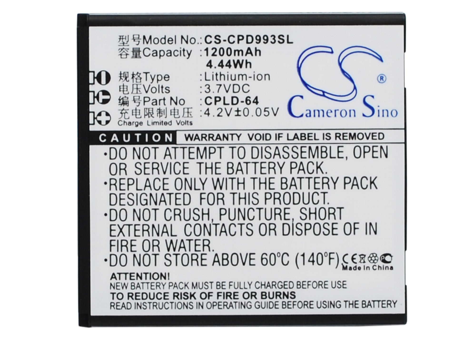 1200mAh Battery - CS-CPD993SL / Li-ion / Volts: 3.7