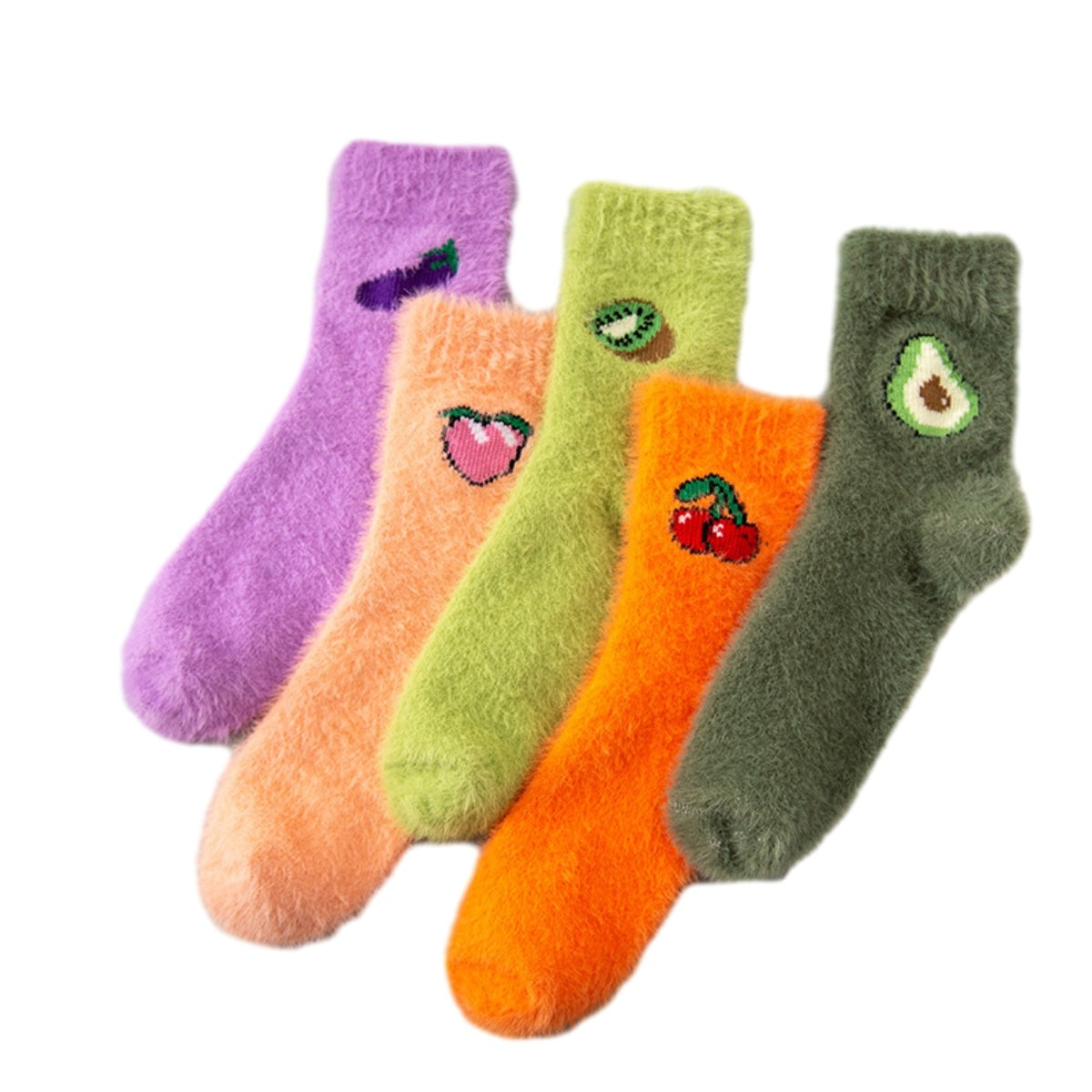 Plush Slipper Socks Women, Warm Fuzzy Crew Socks 5 Pairs