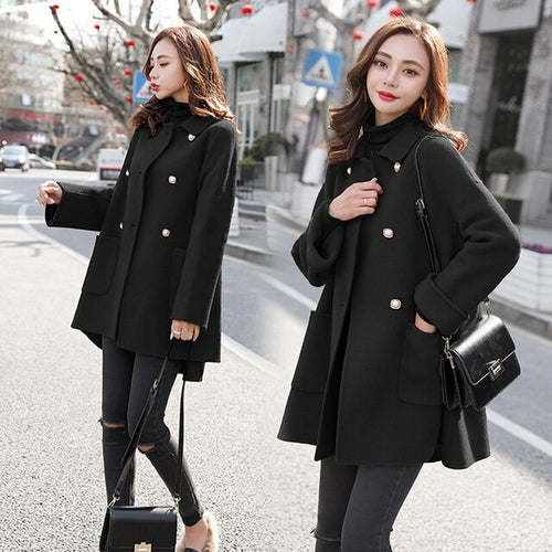 Grey Black Long Wool Coat 2021 New Autumn Winter Woolen Windbreaker