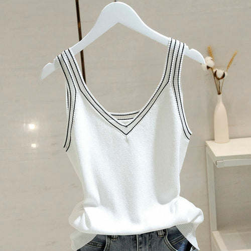 Ice Silk V-neck Knitted Vest Women's Summer New Mesh Hot Sexy