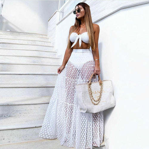 Women Sexy Long Skirt High Waist Dot Skirt Summer Transparent Long