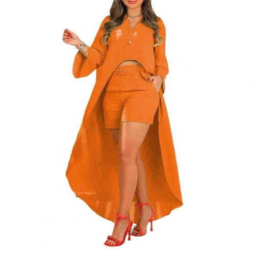 2 Piece Women Sets Sequins Long Sleeve Shirt Turn-down Collar Casual