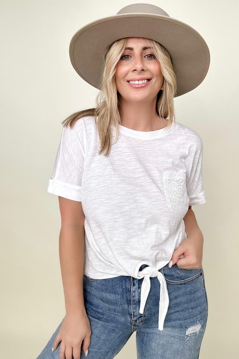 Cropped T-Shirt with Sequin Pocket and Tie Front