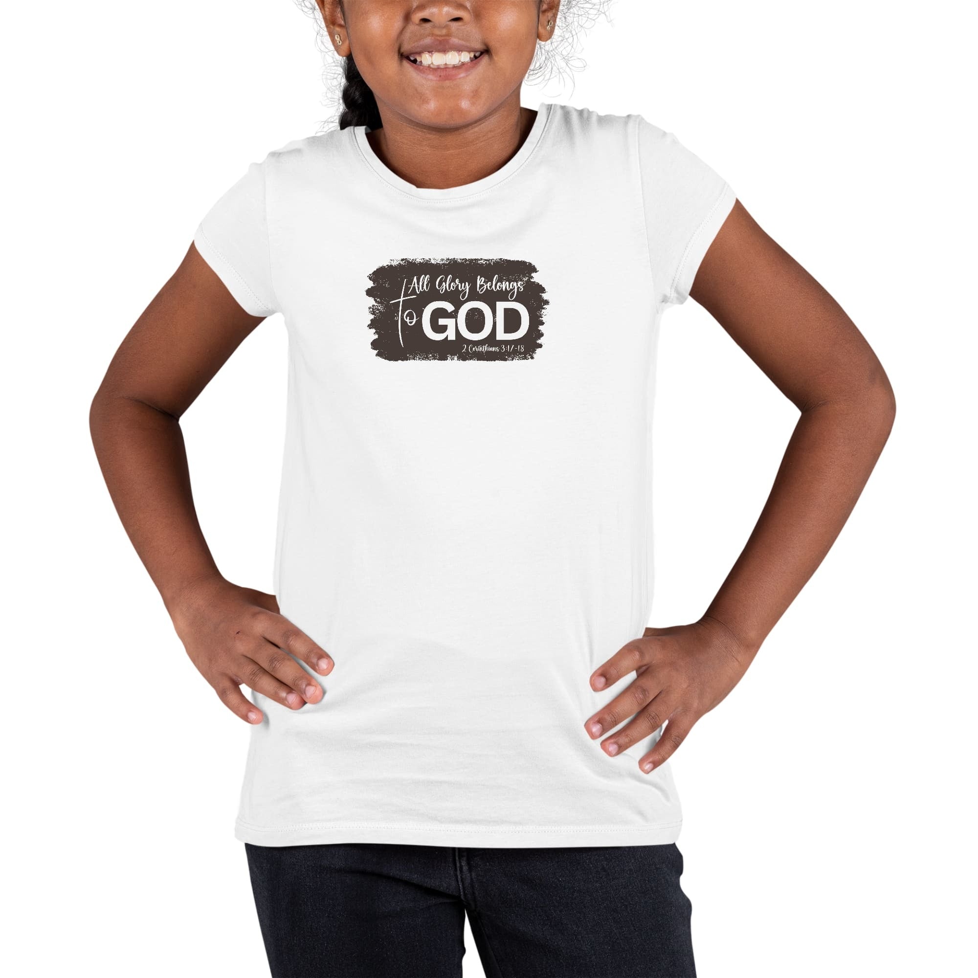 Girls T-shirt, All Glory Belongs To God Christian Illustration Brown