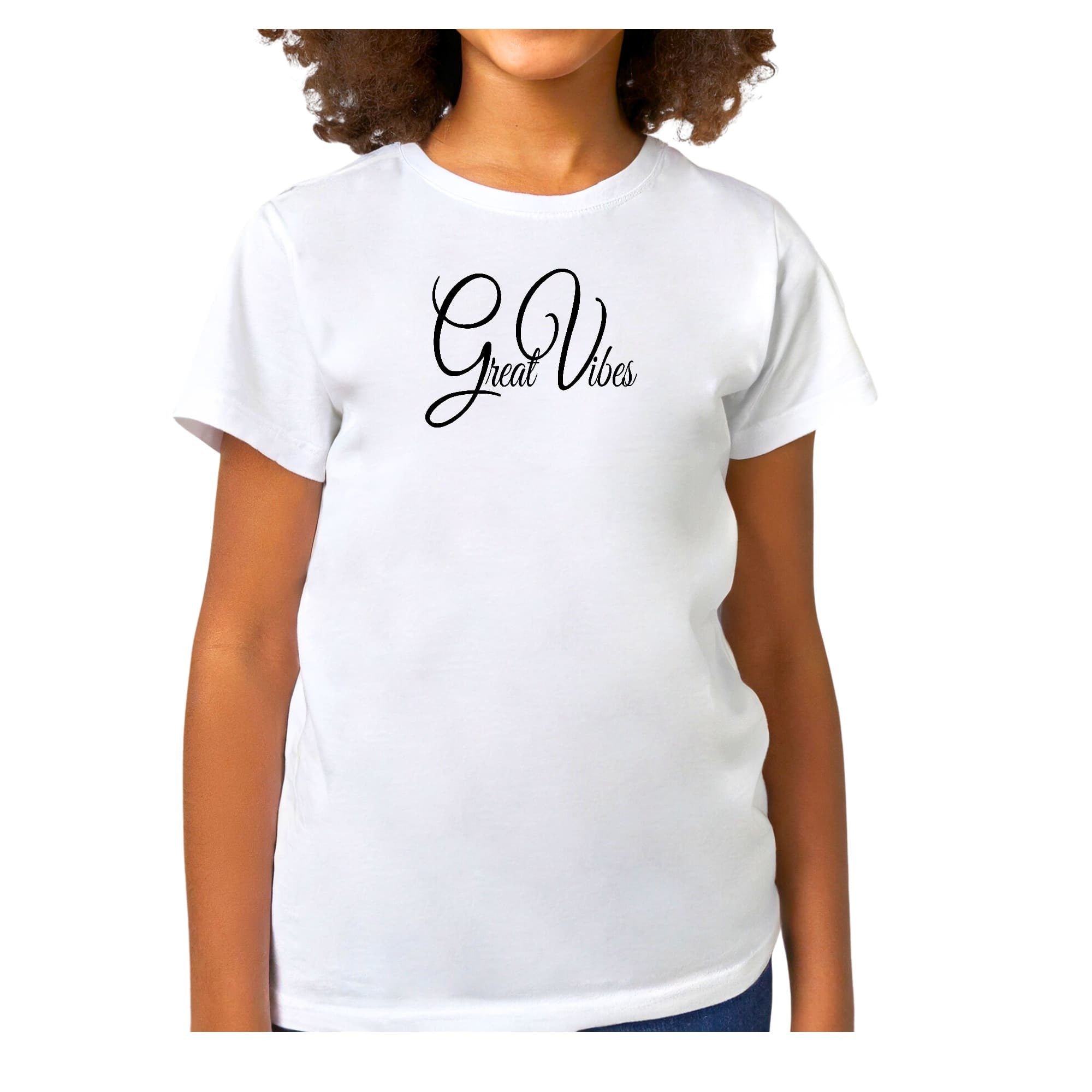 Girls T-shirt, Great Vibes Black Illustration