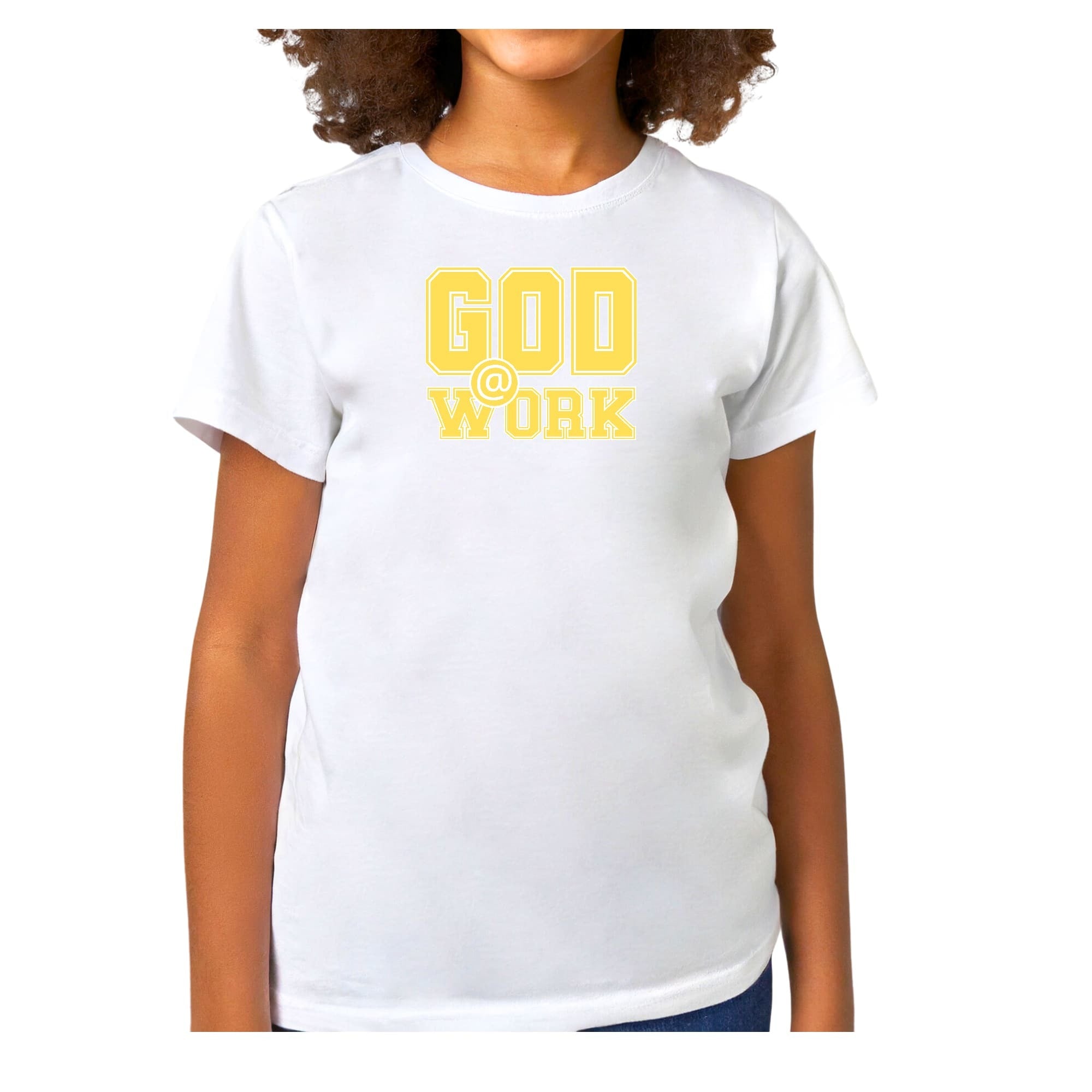 Girls T-shirt God @ Work Yellow And White Print