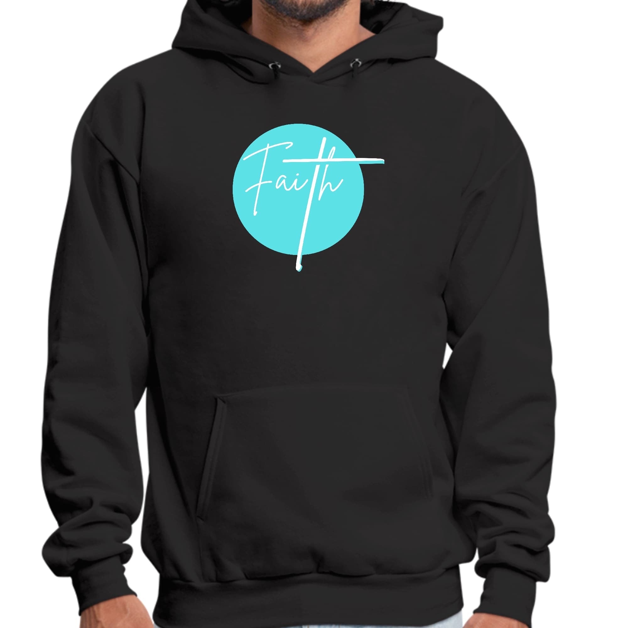 Faith - Christian Affirmation - Cyan Blue And White Graphic Hoodie