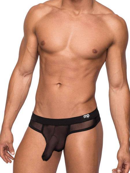 Kiss Me Mesh Micro Thong V Black Red S/M