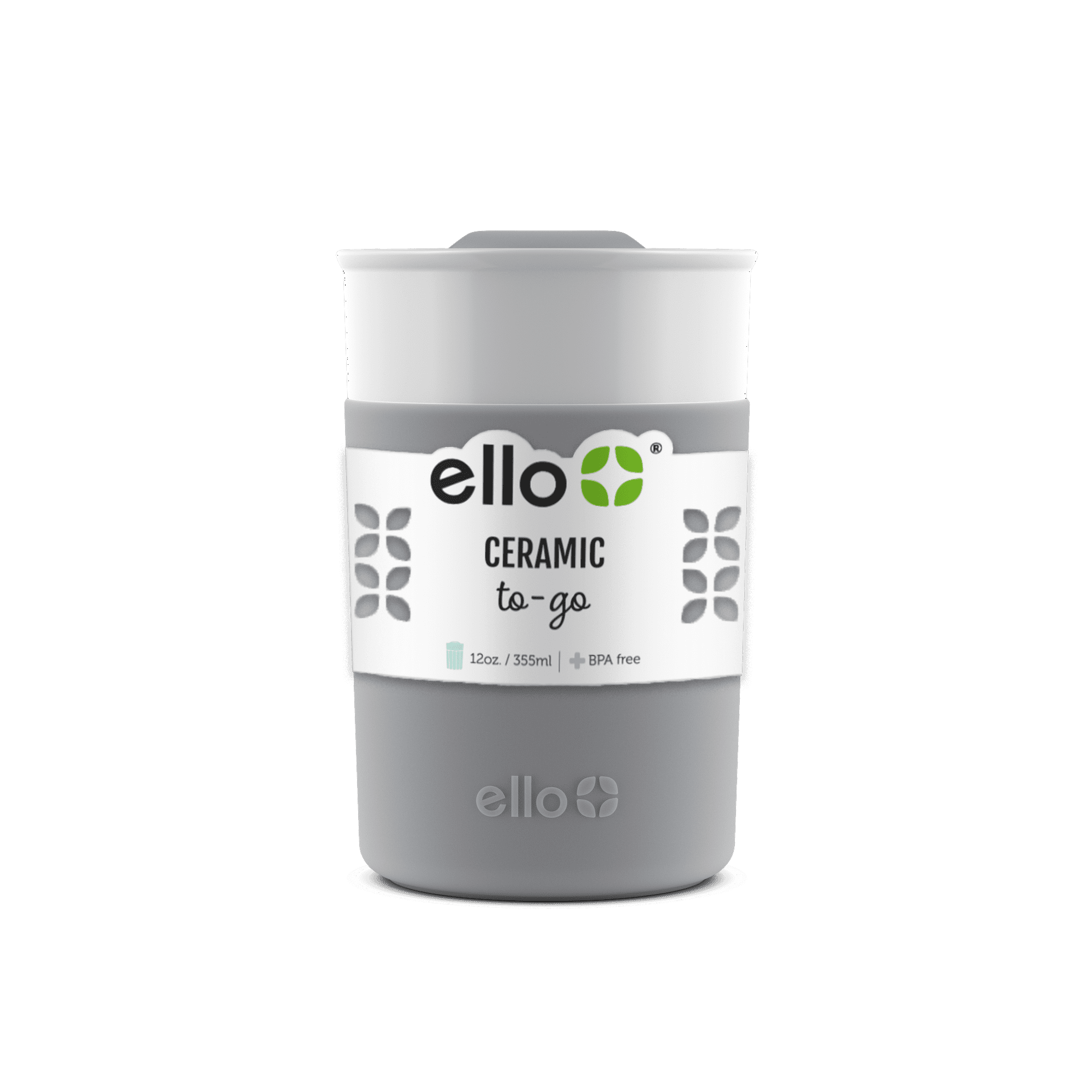 Ello Cool Gray Archie Ceramic Thermos Mug With Lid, 11 fl oz