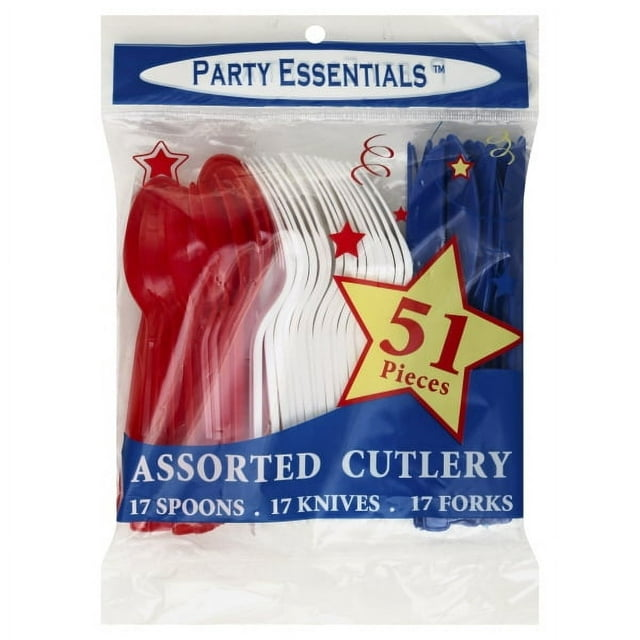 1 - Party Essentials Assorted Cutlery - White, Blue & Red 51 Ct.