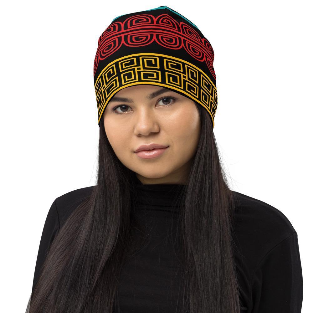 Beanie, Stretchy Double-Layered Geometric Multicolor Black - Unisex