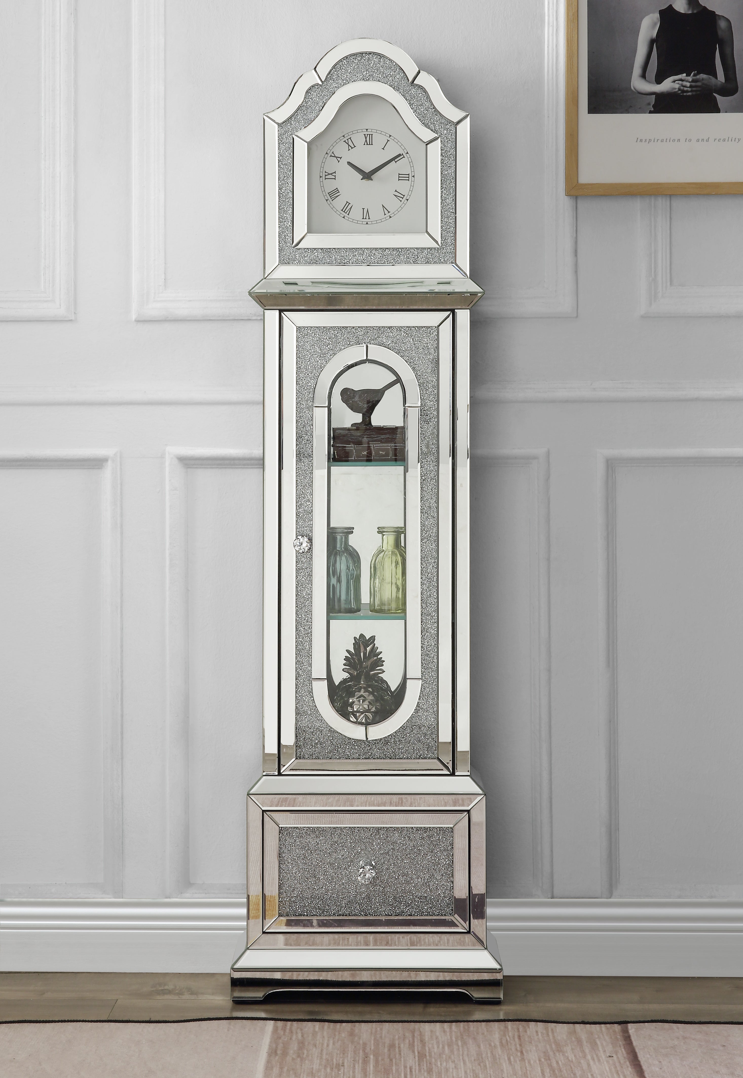 ACME Noralie GRANDFATHER CLOCK W/LED Mirrored & Faux Diamonds AC00347