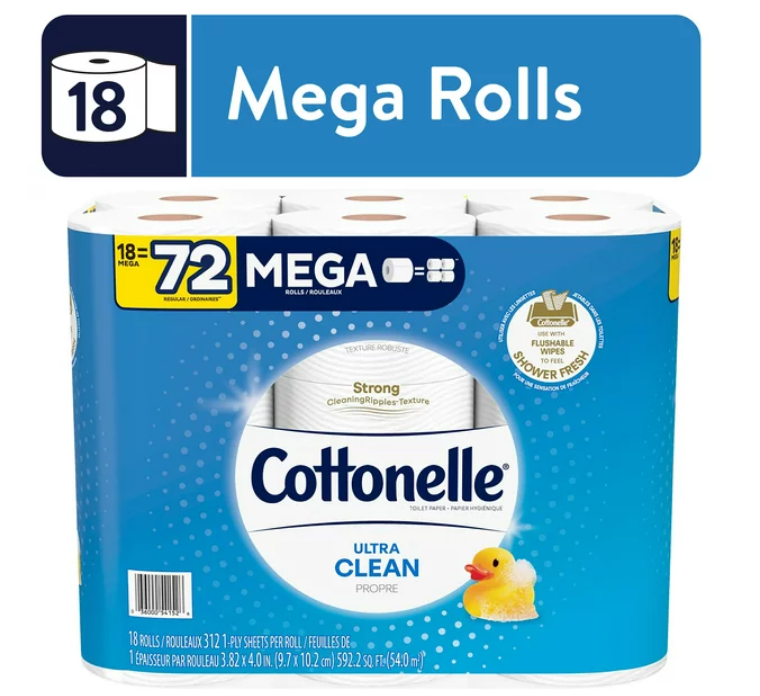 Cottonelle Ultra Clean Toilet Paper, 18 Mega Rolls