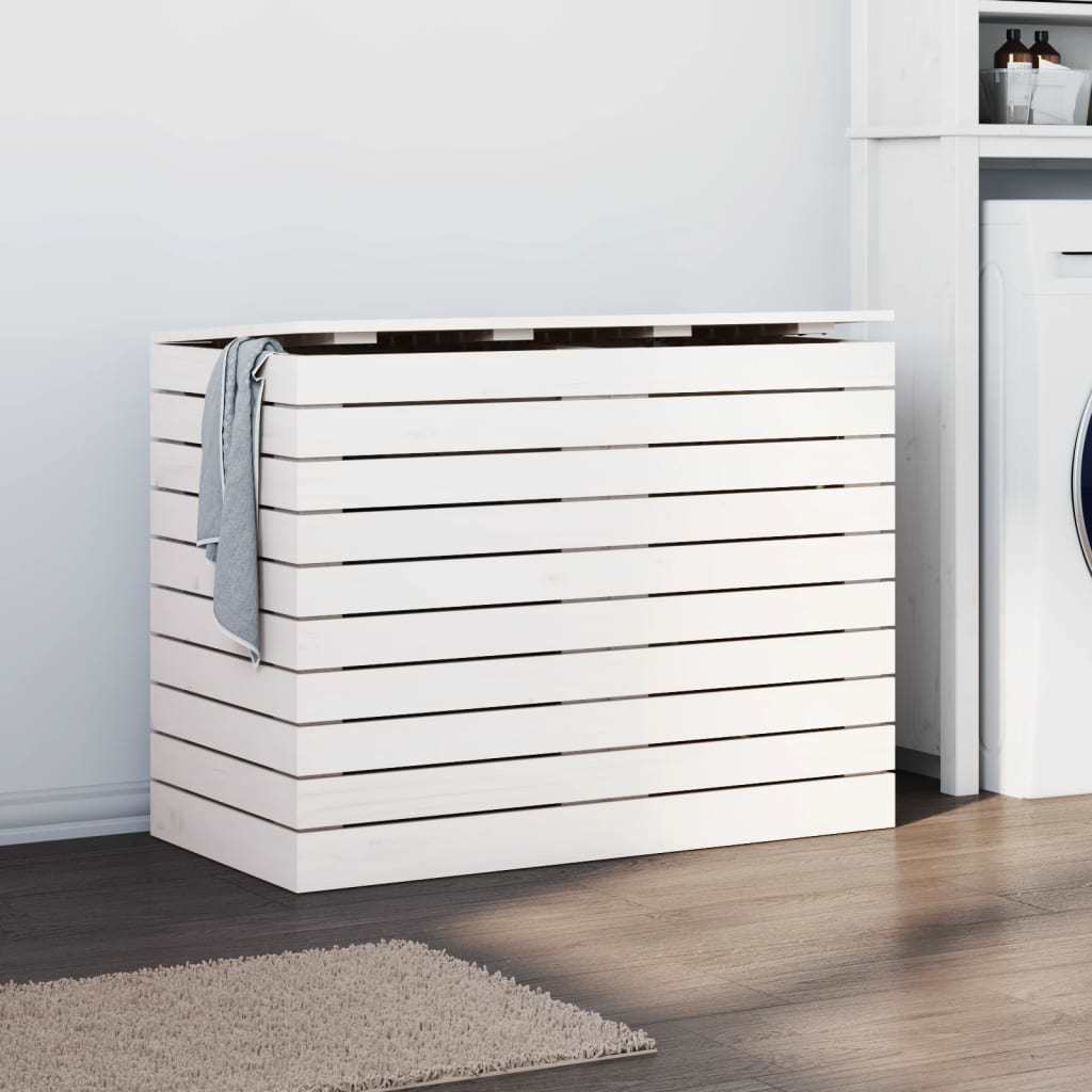 Laundry Basket White 34.8"x17.3"x26" Solid Wood Pine
