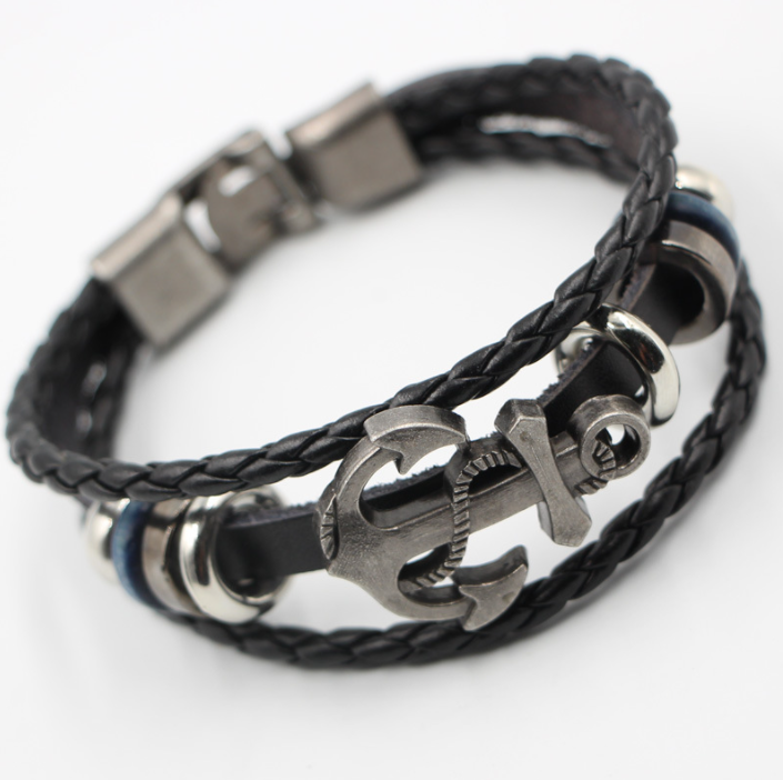 Punk Hand Braided Leather Anchor Bracelet Men's Bracelet