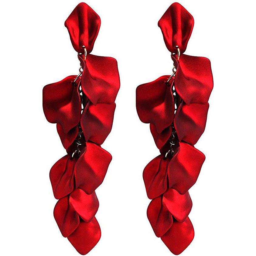 Acrylic Petal Earrings, Long Drop Rose Flower Earrings for Women and Girls