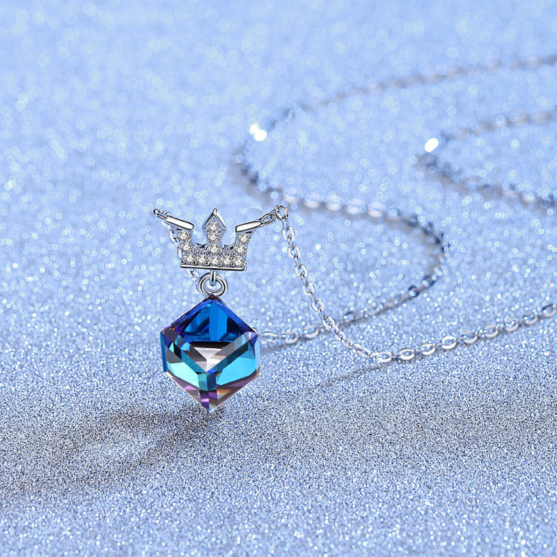 S925 Sterling Silver Tide High Italian Crown Sugar Square Necklace