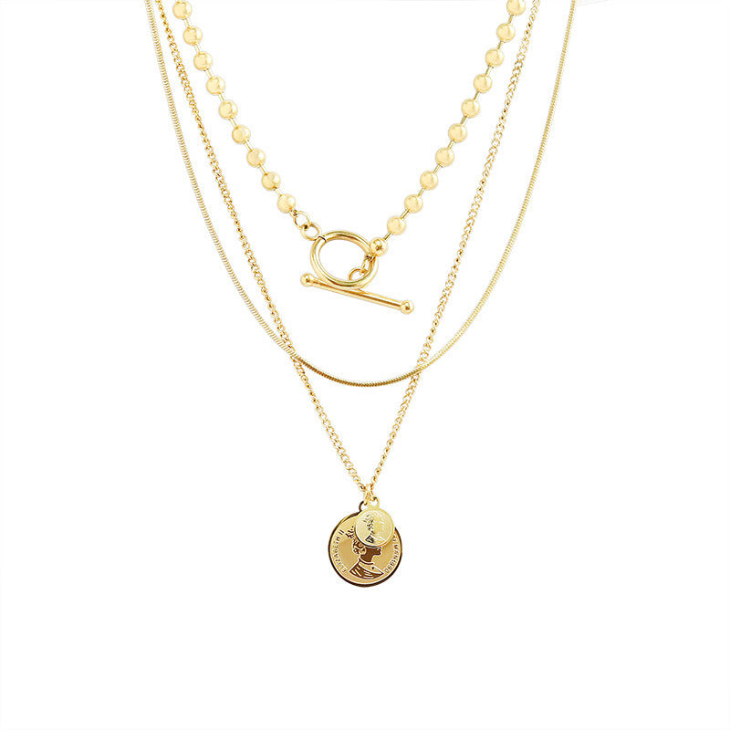 Vintage Double Round Card Queen Portrait OT Style Multilayer Necklace