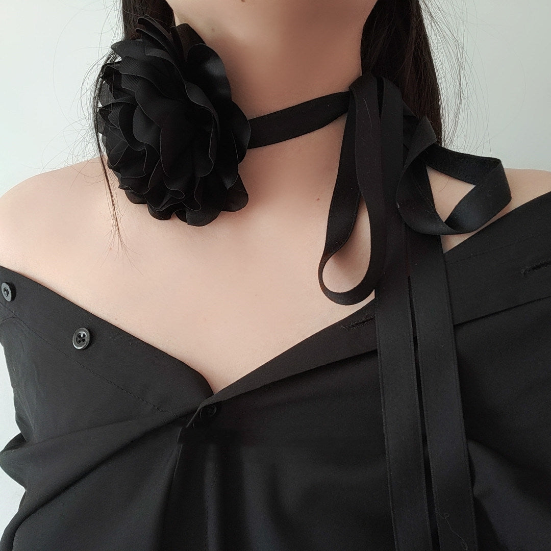 Vintage Dark Black Lace Three-dimensional Large Flower Collar Female