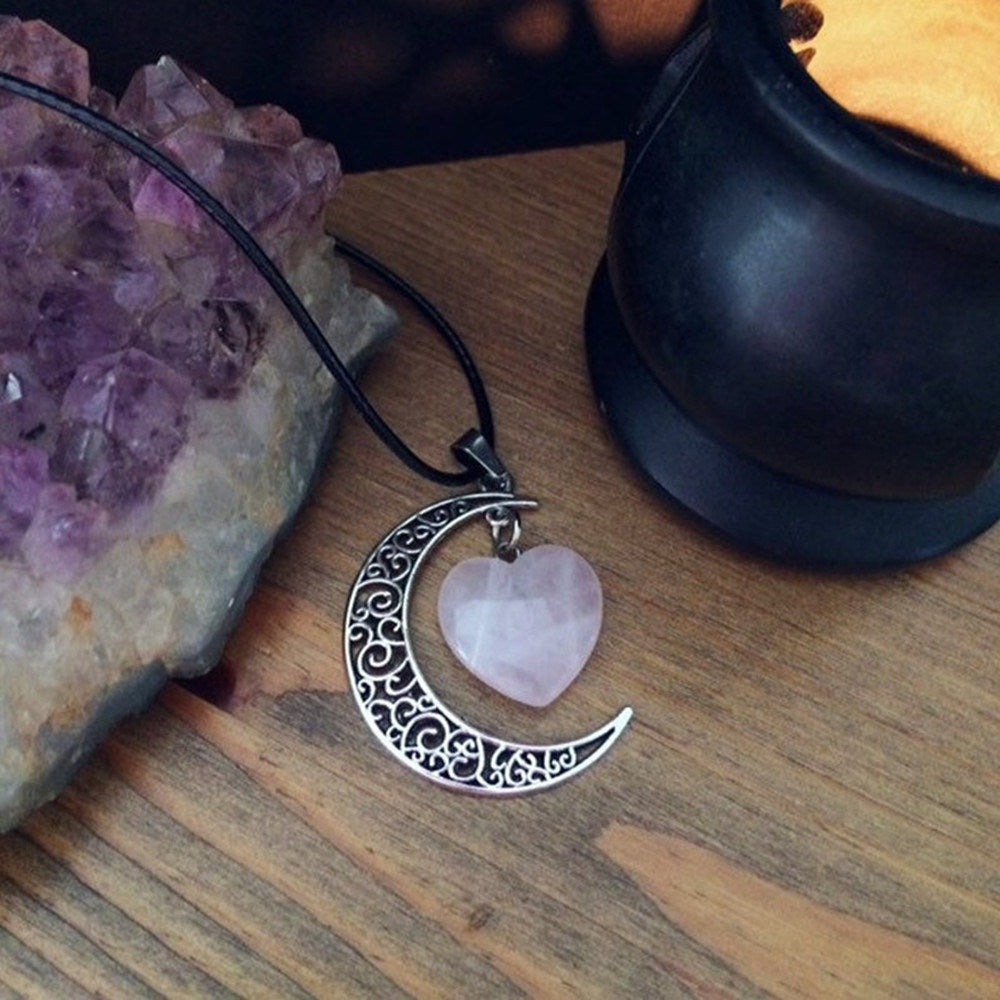 Jewelry Heart Stone Crystal Necklace Retro Moon
