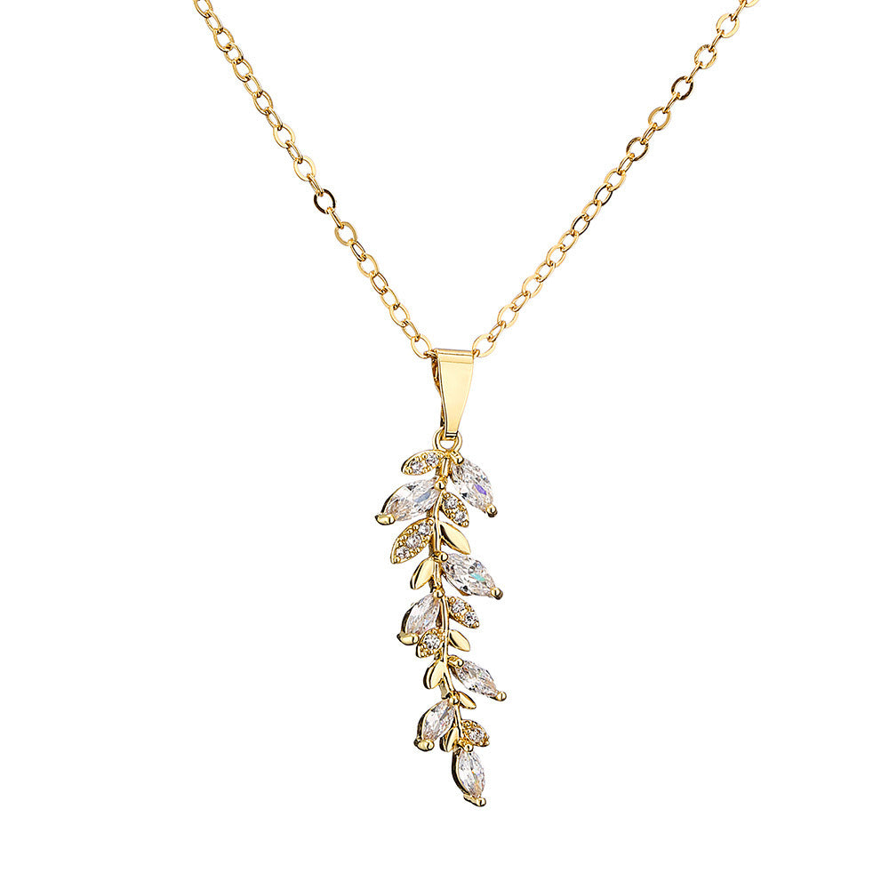 Creative Wheat Tassel Zircon Pendant Necklace