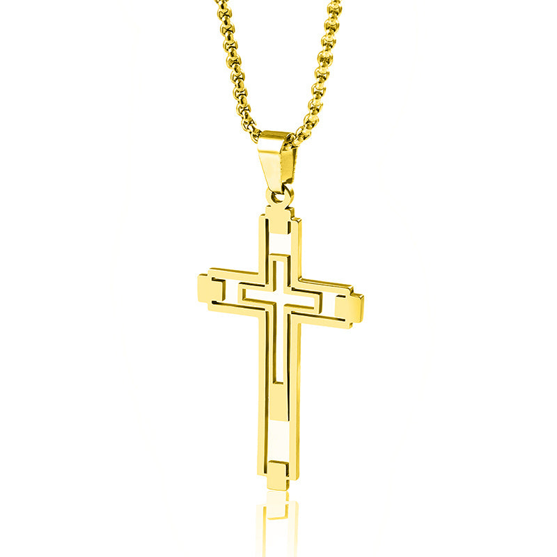 Hip Hop Titanium Steel Hollow Double Cross Pendant Necklace