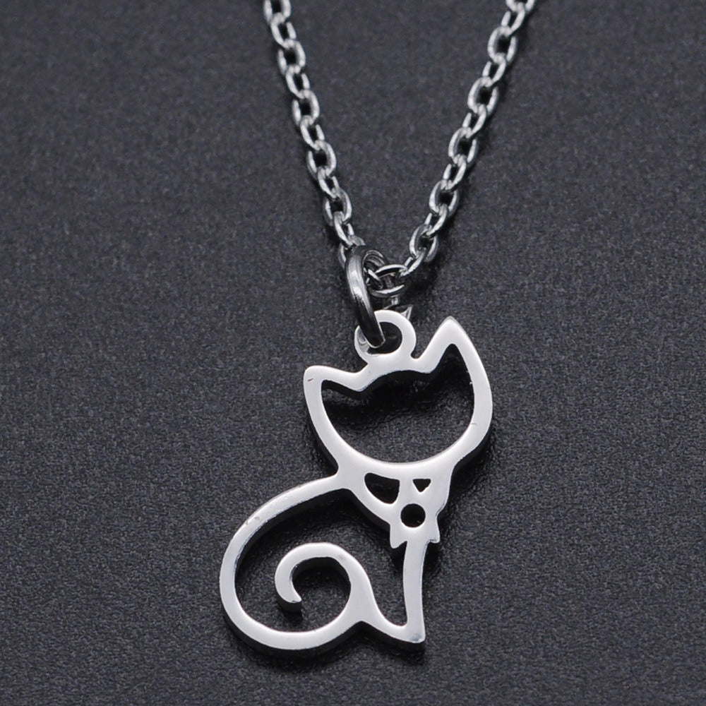 Personalized Cat Key Chain Stainless Steel Hollow Collarbone Necklace